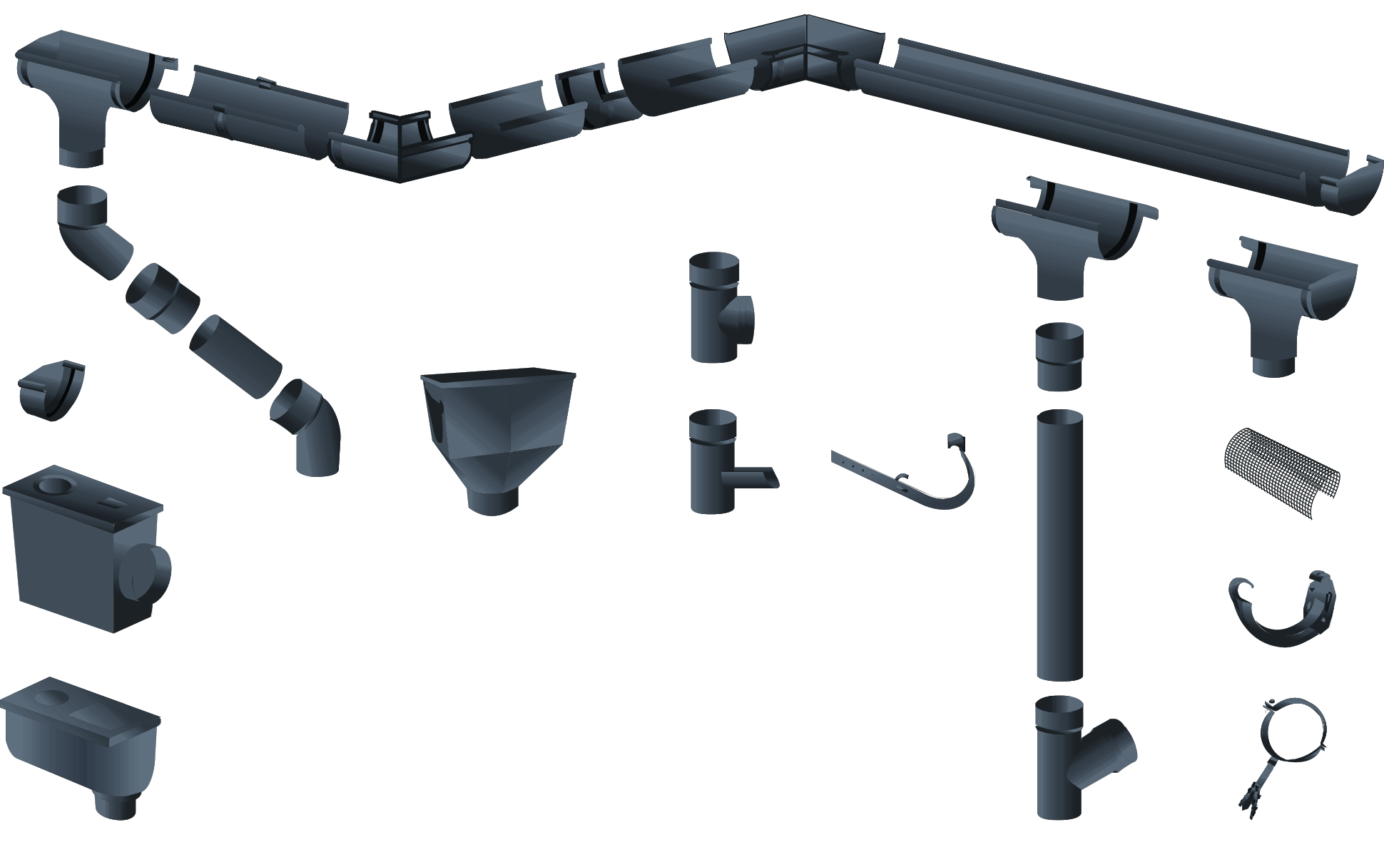 • легкий вес системы в сравнении с металлическими водостоками;