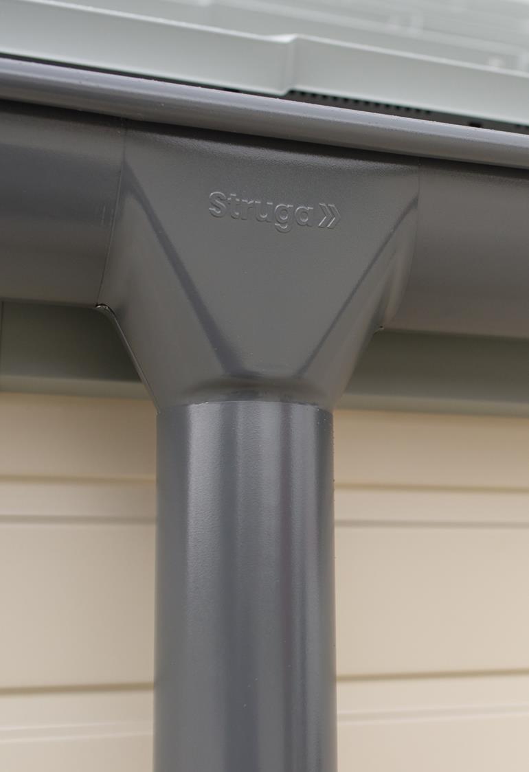 Материал подробно:: Водосточная система Struga изготовлена из скандинавского стального листа SSAB GreenCoat RWS PRO. Материал оцинкованный 275 г/м² и покрытый лаком по бокам с покрытием толщиной 35 мкм.